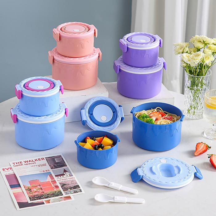 • 蛋糕圓形塑料雙層飯盒1000ml+380